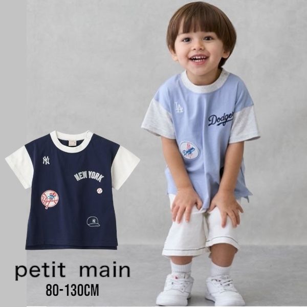 【2025春夏セール】Petit main【MLB】ワッペンTシャツ プティマイン No.9552203( 子供服 男の子 女の子 ベビー キッズ トドラー 半袖 Tシャツ 半T 可愛い カッコイイ 野球 コラボ ロゴ ワッペン プレゼント ギフト 人気 流行り 春 夏 )