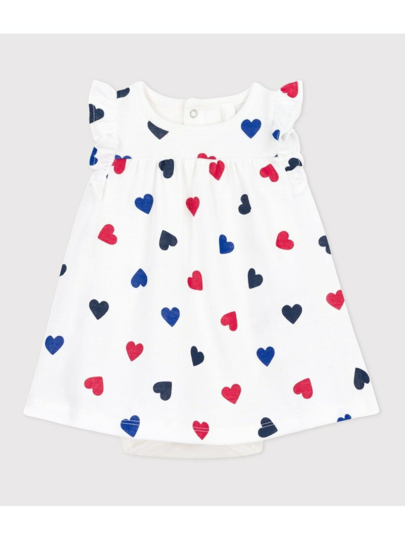 【予約商品について】 ※「先行予約販売中」「予約販売中」をご注文の際は予約商品についてをご確認ください。■重要なお知らせ※ 当店では、ギフト配送サービス及びラッピングサービスを行っておりません。ラッピング・ギフト配送について同時に複数の商品を注文された場合メーカー希望小売価格について置き配についてご利用ガイドPETIT BATEAU(プチバトー)ワンピーストリコロールのハート柄がとってもキュートな袖なしワンピースです。環境にやさしい、第二の肌と呼ばれるやわらかな手触りと伸縮性に優れた1×1リブ編み素材を使用し、快適な着用感を実現しています。袖口のフリルと胸の切り替えがデザインのポイント。ボディとワンピースが一体型で、背面にはスナップボタンが施されているので、外出時などのお着替えも簡単で安心!ご自宅用としてはもちろん、ご出産祝いなどのギフトにも喜ばれるおすすめアイテムです。※濃色の製品は、摩擦や洗濯の際に色落ちや色移りをする場合があります。中性洗剤で単独洗いをしてください。型番:A0CH1-01-010 NU3256【採寸】サイズ着丈身幅袖丈6ヶ月 67cm36.6cm19.9cm4.2cm12ヶ月 74cm39.6cm21cm4.8cm18ヶ月 81cm42.6cm22.5cm5.3cm商品のサイズについて【商品詳細】モロッコ素材:100%綿サイズ:6ヶ月 67cm、12ヶ月 74cm、18ヶ月 81cm※画面上と実物では多少色具合が異なって見える場合もございます。ご了承ください。商品のカラーについてこの商品はセール商品のため返品・交換対象外です詳細はこちら >>