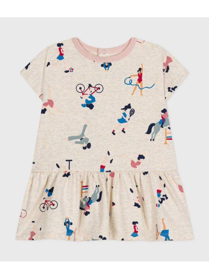 【予約商品について】 ※「先行予約販売中」「予約販売中」をご注文の際は予約商品についてをご確認ください。■重要なお知らせ※ 当店では、ギフト配送サービス及びラッピングサービスを行っておりません。ラッピング・ギフト配送について同時に複数の商品を注文された場合メーカー希望小売価格について置き配についてご利用ガイドPETIT BATEAU(プチバトー)半袖ワンピース様々なスポーツを楽しむ人たちのグラフィックをプリントしたキュートなワンピースです。環境にやさしく、さらりとした肌触りが快適な着心地を提供するコットンジャージ素材を使用し環境にも配慮。ウエストからの切り替えがデザインにアクセントを加えています。また、背面にはスナップボタンを施してあるのでお着替えも簡単。デイリーでの着用からお出掛けスタイルまで幅広いコーディネイトが楽しめる一枚です。※プリントは永久的なものではなく、もみや摩擦でひび割れたり、繰り返しの洗濯によるプリントの変色や、脱落が生じる場合があります。中性洗剤などで単独洗いをしてください。型番:A0BVU-01-070 MH6455【採寸】サイズ着丈身幅袖丈12ヶ月 74cm40.9cm30cm14.5cm18ヶ月 81cm44.3cm31cm15cm24ヶ月 86cm47.1cm32cm15.5cm36ヶ月 95cm50.1cm33cm16cm商品のサイズについて【商品詳細】チュニジア素材:100%綿サイズ:12ヶ月 74cm、18ヶ月 81cm、24ヶ月 86cm、36ヶ月 95cm※画面上と実物では多少色具合が異なって見える場合もございます。ご了承ください。商品のカラーについてこの商品はセール商品のため返品・交換対象外です詳細はこちら >>