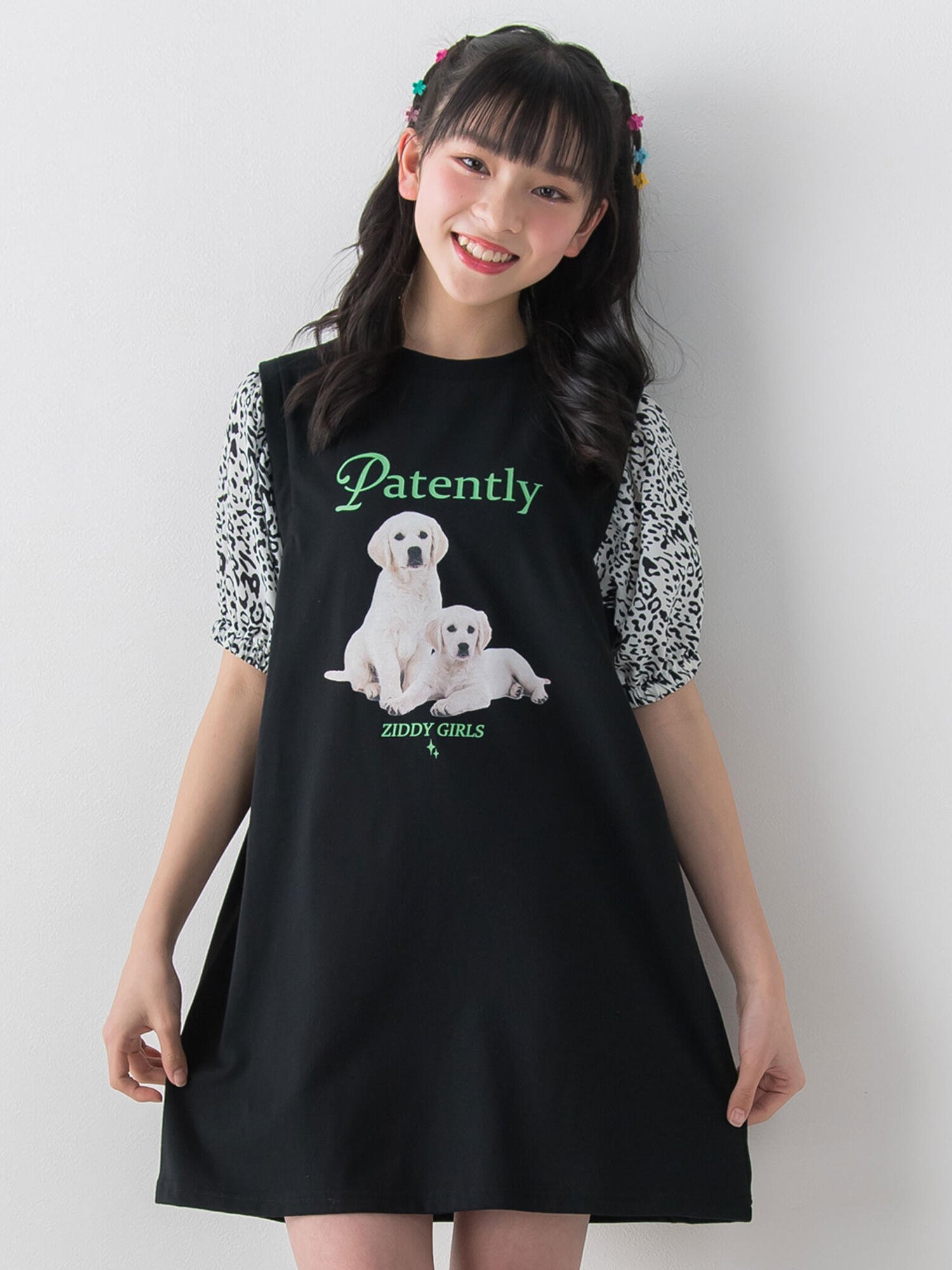 【 ニコ☆プチ 6月号 掲載 】 袖 レオパード柄 Dog プリント ワンピース (130〜160c/ジディ(ZIDDY)