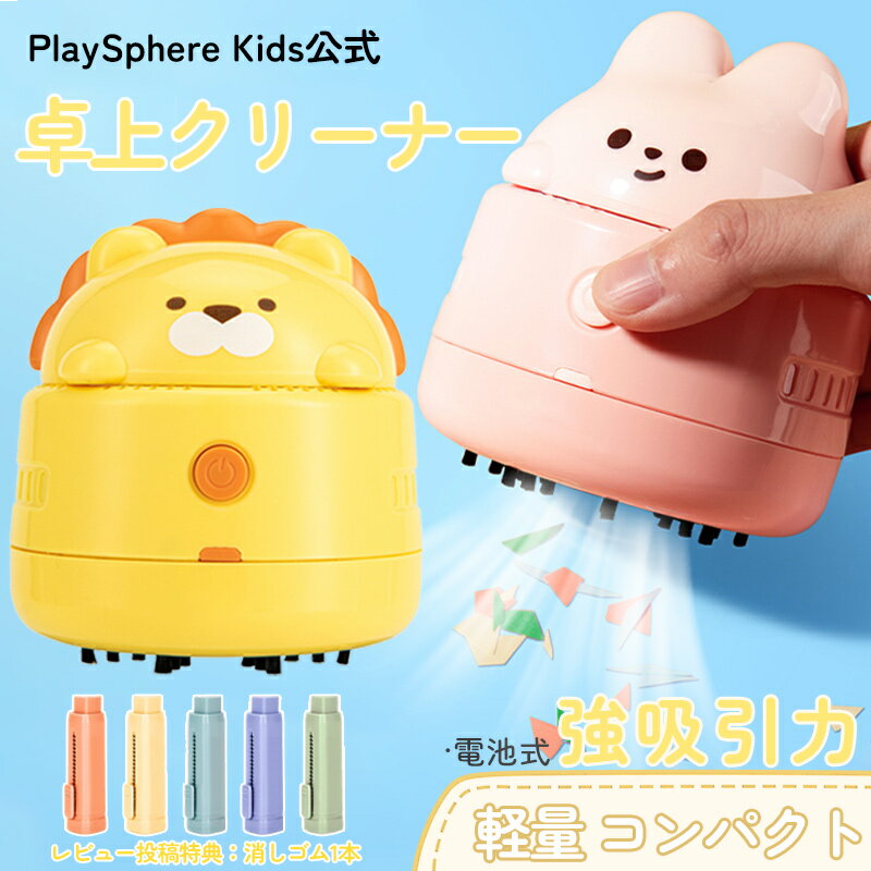 【全商品最大15%OFFクーポン配布】PlaySphere Kids公式 卓上クリーナー 子供 小学生 クリーナー ハンディクリーナー コンパクト 消しかす クリーナー 掃除機 ハンド掃除機 ミニクリーナー 車内 清掃 おしゃれ かわいい コードレス ミニクリーナー 消しゴム鉛筆