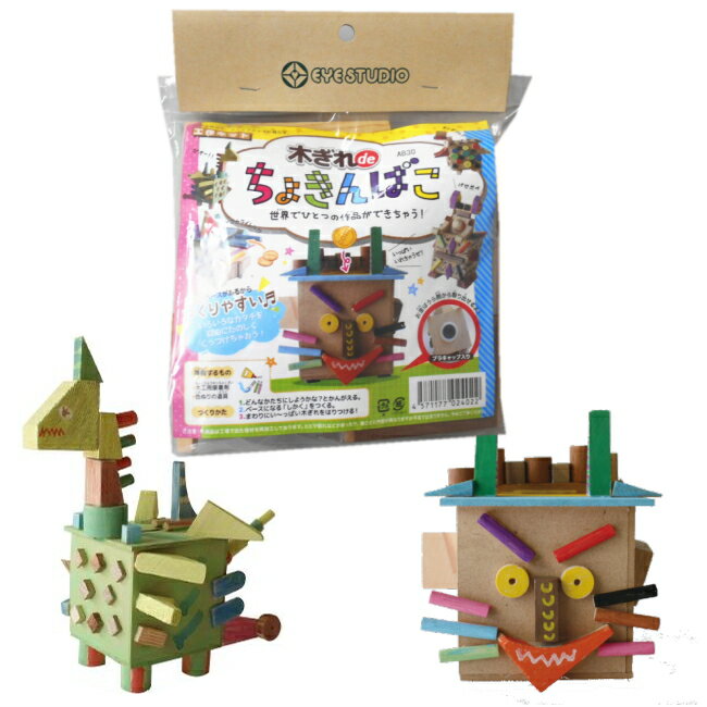 【木切れde貯金箱 商品説明】 ◆ベースがあるから作りやすい! ◆ベースの四角い貯金箱を作ったら、付属の木を自由に貼り付けて、オリジナルの貯金箱を作ろう! ◆様々な形、大きさ、素材の木切れが、想像力を膨らませます! ◆環境にやさしい木製の工作キットです ◆小学生の夏休み 冬休みの自由研究、作品展の作品作りに最適 ◆親子の工作教室にも好評 ◆老人ホームなどお年寄り向けのレクレーションとしての工作材料としてもお使いいただけます ◆自由にデザインできるので男の子にも女の子にも使えます ※接着剤は付属していません。木工用接着剤をご用意して下さい 【木切れde貯金箱 内容品】 【内容品】 ・ちょきんばこベース一式 ・プラキャップ1個 ・紙やすり1枚 ・いろいろな木切れ(袋ごとに詰め合わせは異なります) ・説明書 ●ベースの出来上がりサイズ:縦78×横78×高さ78mm ●いろいろな木切れの種類:ヒノキ、スギ、ブナ、タモ、パインなど ●対象年齢:4歳〜小学校低学年から 【作成のために用意するもの】 ・木工用接着剤 ・色塗り道具 夏休み 冬休み 自由研究 自由工作 木の工作 小学生 男の子 女の子 人気 簡単 貯金箱