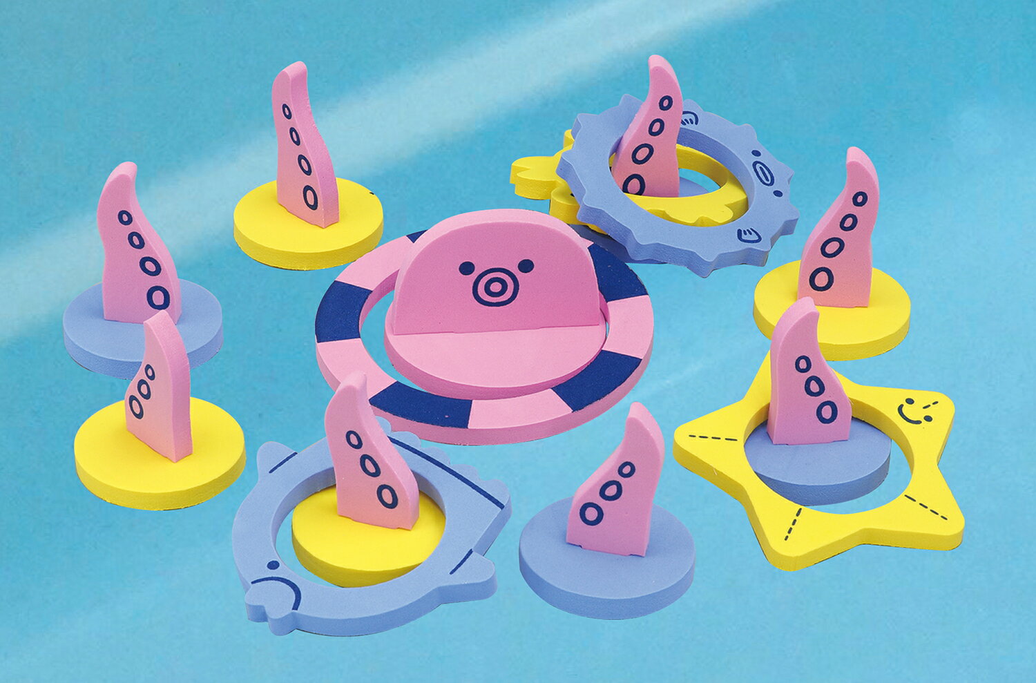 たこ足めがけて輪を投げよう!商品サイズ/EVAシート:200×200×8mm1個重量/100g材質/EVAセット内容/EVAシート×31個梱包形態/袋入り