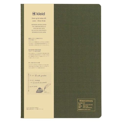 方眼ノート kleid クレイド 2mm grid notes A5 Olive Drab 新日本カレンダー おしゃれ文具 大人 仕事 ビジネス シンプル メール便可 マシュマロポップ