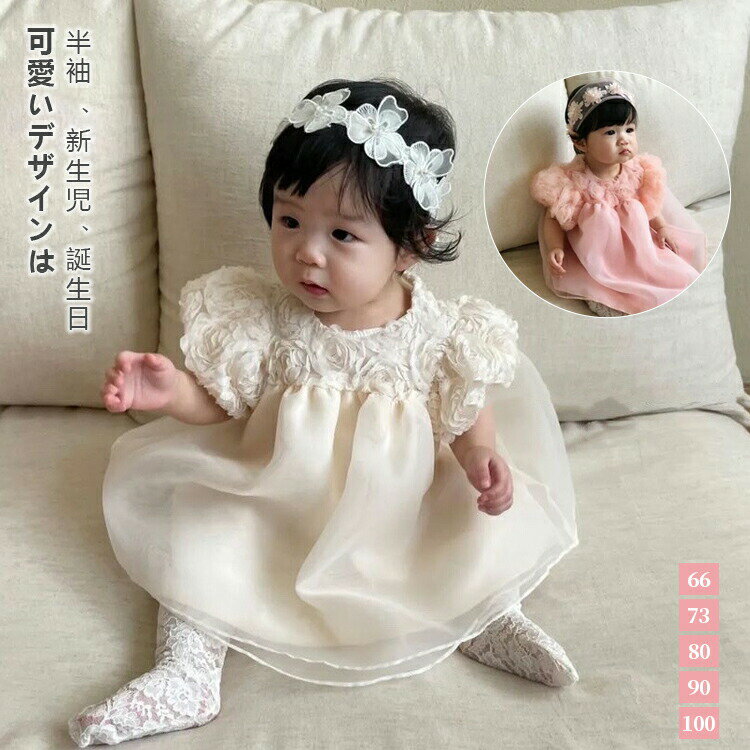 ベビードレス 結婚式 白 ピンク 女の子 赤ちゃん セレモニードレス ベビー ドレス 半袖 誕生日 出産祝い 夏 ベビー服 ドレス かわいい 花 フラワー 新生児 赤ちゃん ふんわり ゆったり 洋服 女児 ガールズ カジュアル ファッション 重ね着 お出かけ 普段使い プレゼント