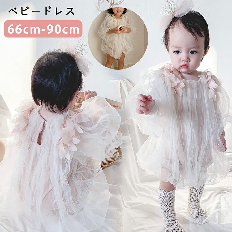 【送料無料★レビュー特典】ベビーワンピース 長袖 リボン チュール 赤ちゃん セレモニードレス 誕生日 お祝い 結婚式 ドレス 女の子 ジュニア 100日祝い 買いまわり プチプラ 80cm 90cm 100cm 110cm 1歳 2歳 3歳