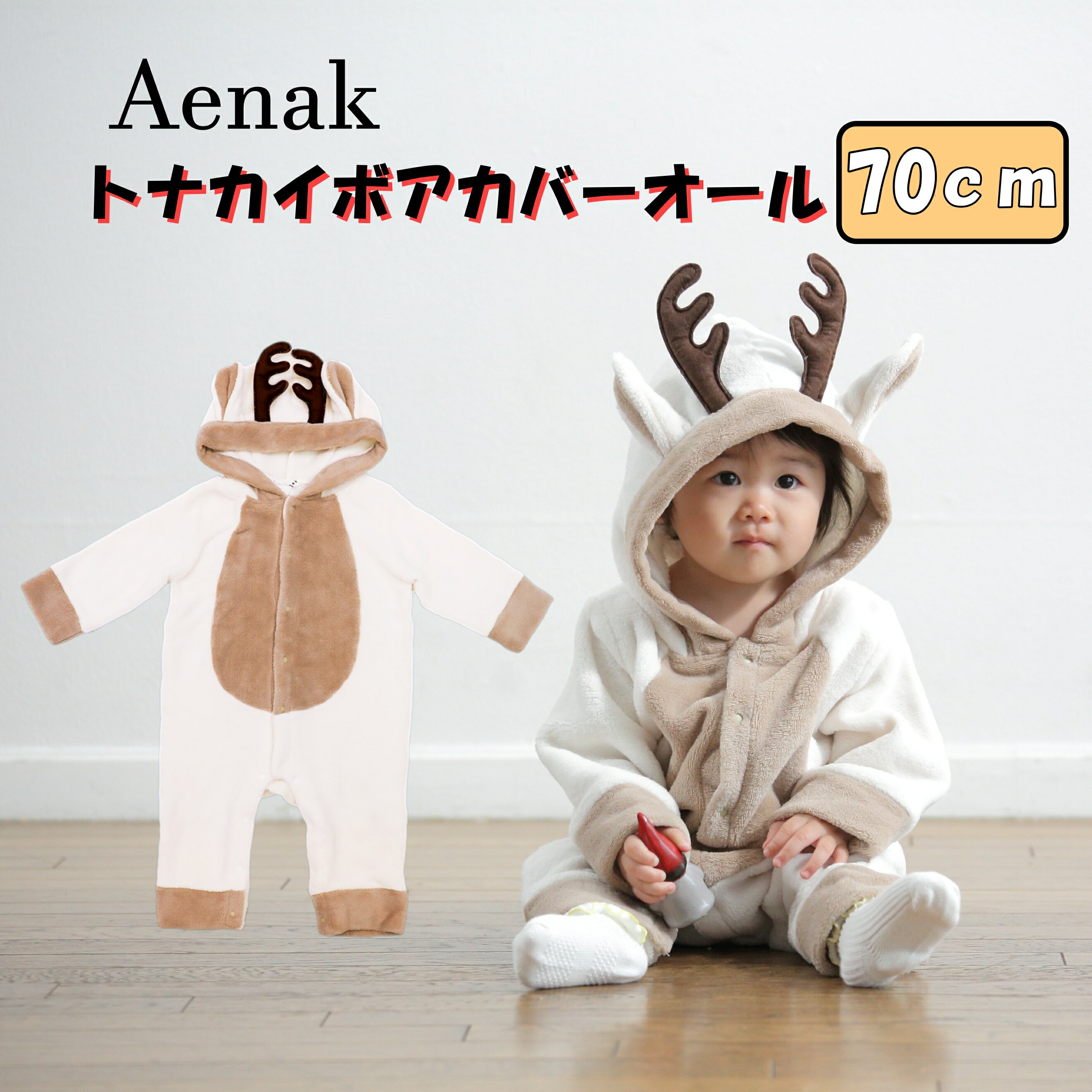 商品情報商品説明\赤ちゃんが“もこもこトナカイ”に大変身!/イベントから日常まで大活躍の、ふわふわ着ぐるみカバーオールです。【クリスマスの主役級かわいさ♡】● ツノ付きトナカイデザインがとってもキュートもこもこ素材×つぶらな瞳×ツノの立体デザインで、まるで絵本から飛び出してきたような愛らしさ♪写真映えも抜群で、パーティーやSNS投稿にもぴったり!● イベントシーンでも大人気!クリスマスやハロウィンの仮装、ベビーフォト撮影、家族イベントなど、さまざまなシーンで主役になれる1枚です。● もこもこボア素材であたたか&やさしい肌触り寒い季節でも安心のしっかりとした厚みと、赤ちゃんの肌にやさしい柔らかさが魅力。● スナップボタンでおむつ替えもスムーズ股下スナップ仕様で、着たままおむつ替えができてママも安心◎普段使いにもおすすめです。“可愛い”と“実用性”を兼ね備えた、冬にぴったりのトナカイコスチューム。記念撮影・ギフト・デイリー使いまで、幅広く楽しめるアイテムです。素材/材質ポリエステル100%(マイクロボア素材)サイズ/寸法●サイズ(肩巾/身巾/総丈/袖丈)70(24cm/31cm/57cm/25cm)注意※色味について可能な限り実物の色に近づけるようにしておりますがお部屋の照明やモニターの設定等により実際の商品と色味が異なる場合がございます。※入荷時期によって色味が若干異なる場合がございます。※ボアは商品の特性上、毛羽が付着しますが、堅牢度確認しておりますのでご安心ください。クリスマス ベビー服 70 トナカイ ロンパース カバーオール コスプレ サンタ 赤ちゃん 男の子 女の子 着ぐるみ ボア あったかい ギフト プレゼント 自宅用 モコモコ ボア ロンパース 全身 かわいい SNS 写真映え 思い出作り サンタクロース 5