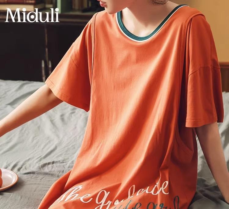 マタニティ パジャマ カジュアル おしゃれ ファッション レディース 半袖 スカート ネグリジェ ミドル丈 ロング 夏 ゆったり 薄手 コットン 室内向け ピンク オレンジ