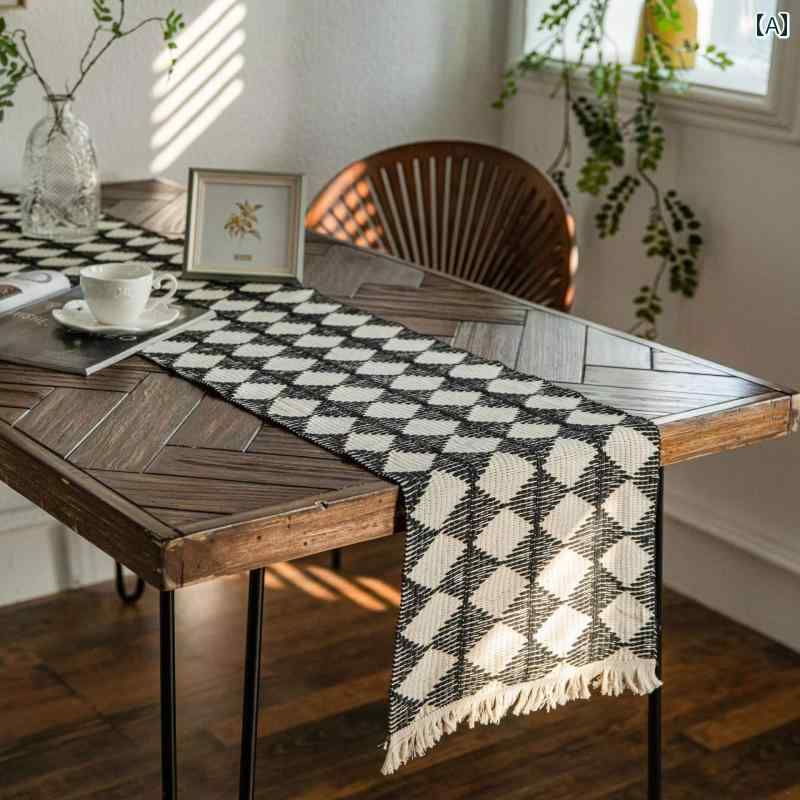 タッセル テーブルランナー おしゃれ 北欧 和風 瞑想 綿 リネン 編組 テーブル ランナー 対照的 色 コーヒー 装飾 ロング ストリップ カバー スカーフ スプライシング プレースマット