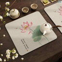 テーブルランナー モダンアジアン 禅意 茶器マット ティーマット お茶席用 食卓 リビング インテリア 綿麻 珪藻土 吸水性 滑り止め ロング 長方形 高級感 おしゃれ 植物花柄