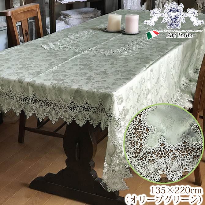 【スーパーセール★3,520円OFF!】 テーブルクロス135x220 オリーブグリーン Olive〜オリーブシリーズ【 2色展開 】 レース 花柄 おしゃれ エレガント 【 メーカー直送 】
