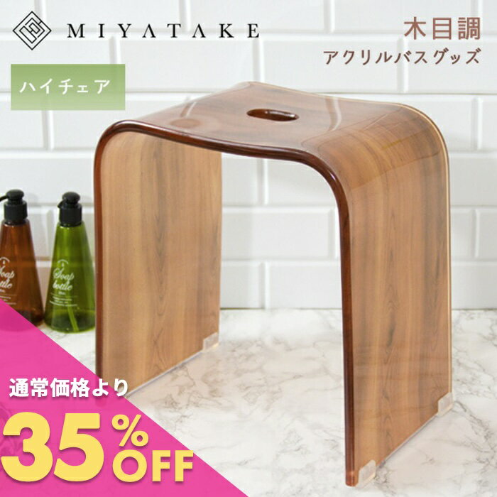 【公式】木目柄アクリルバスチェア ハイタイプ 9nc-bch020|バスチェア アクリル バスチェア おしゃれ 風呂 椅子 風呂 イス 風呂 いす バス用品 浴室用品 お風呂 木目 ブラウン 入浴 洗髪 シャワールーム