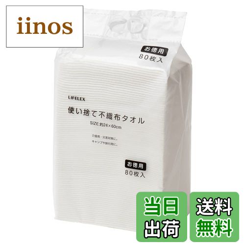 【送料無料】コーナン オリジナル LIFELEX 使い捨て不織布タオル フェイス 24×60cm 80枚入り ホワイト 色:ホワイト、サイズ:約24×60cm