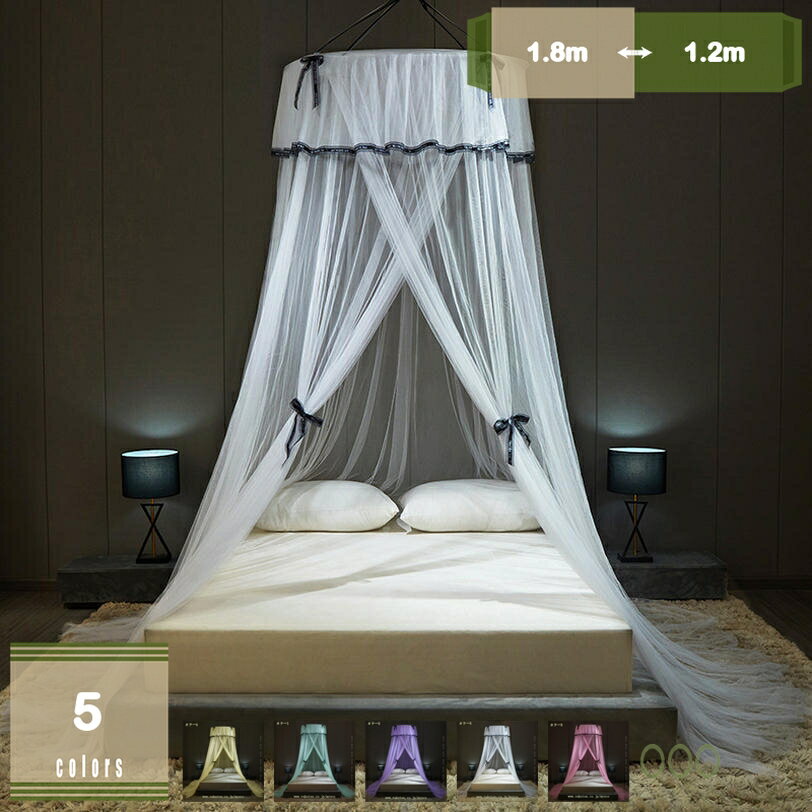 天蓋カーテン 蚊帳 モスキートネット かや 円形 防虫 防蚊 快適安眠 虫除け 円柱形 吊り下げ 1.2~1.8mベッド適用 洗濯可能 ベッドキャノピ 通気性 インテリア 快適な安眠 取り付け簡単 防塵 室内 昆虫防ぐ ベッドカーテン 部屋飾り mysco