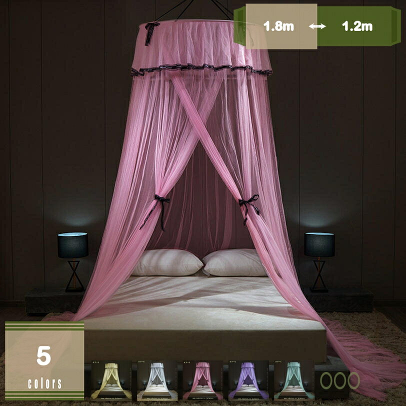 天蓋カーテン モスキートネット 北欧 1.2-1.8mベッド対応 キャノピー モスキーノテント スリーピングカーテン 蚊帳 お姫様ベッド かや 着地式 吊り下げ 円形蚊帳 インテリア 防虫防蚊 ベッド帳 お姫様 ベッド飾り カーテン 寝部屋 寝室 mysco