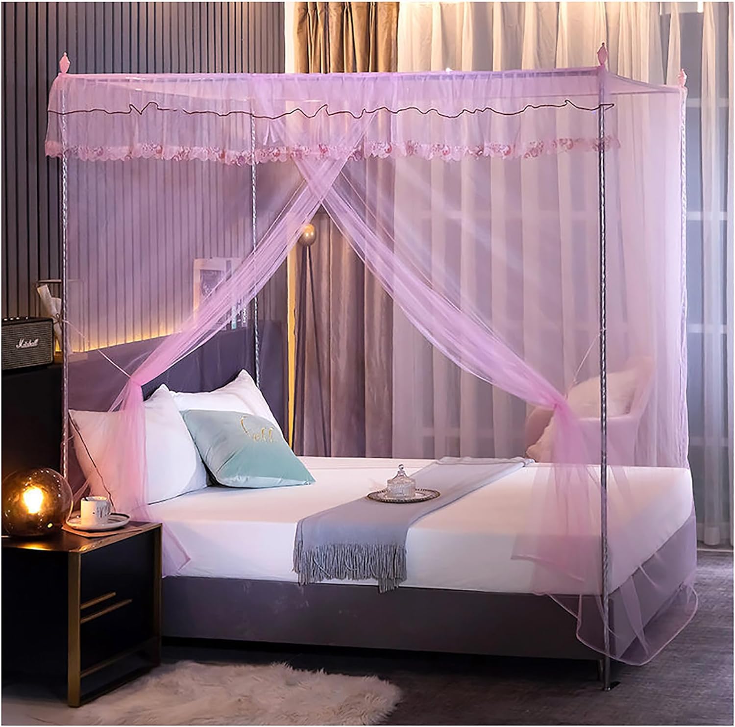 ステンレス鋼天蓋ベッドフレームポスト 4 コーナー天蓋ベッドフレームポストポールカーテン蚊帳フレーム寝室の装飾 ピンク Twin