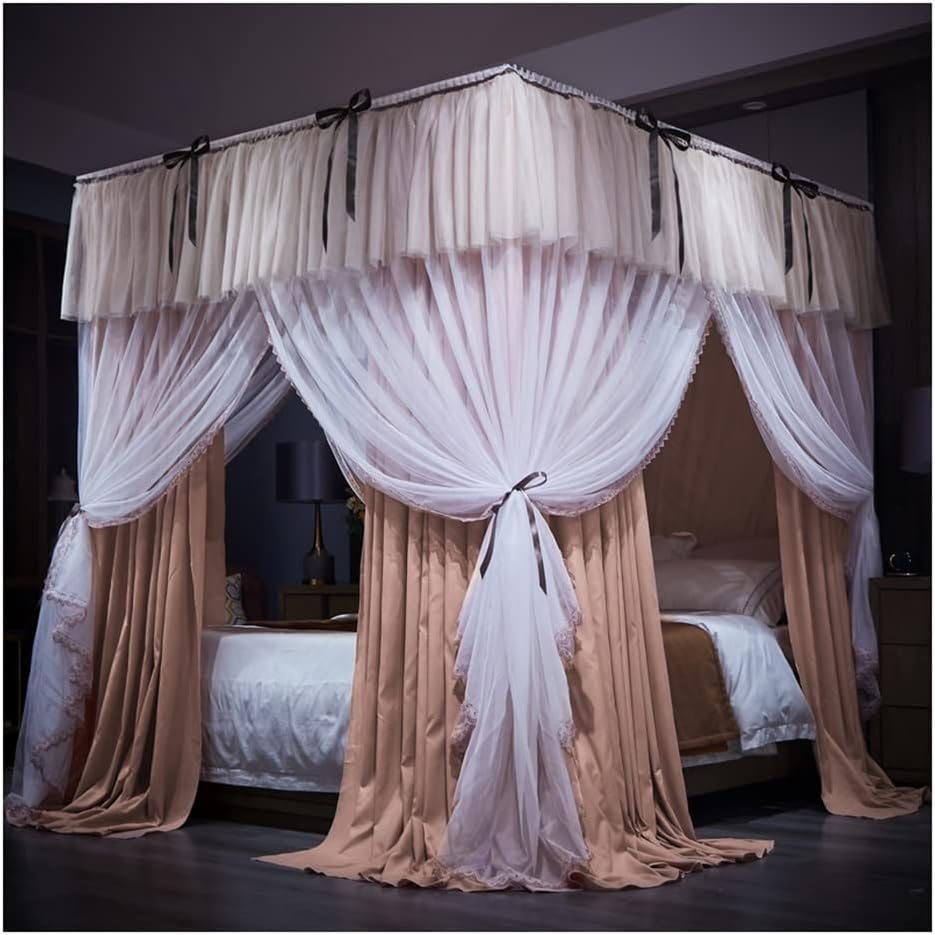 天蓋 二層リネンベッド天蓋付き蚊帳、4コーナーポストベッドカーテンステンレス鋼ブラケット付きの寝室の装飾