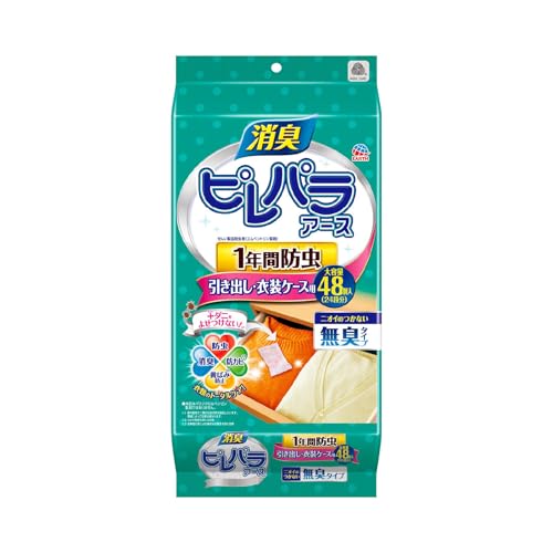 ピレパラアース 防虫剤 1年用 無臭 引き出し 衣装ケース タンス 衣類防虫剤 48包入 防虫 消臭 防カビ ダニよけ 置くだけ 無香料