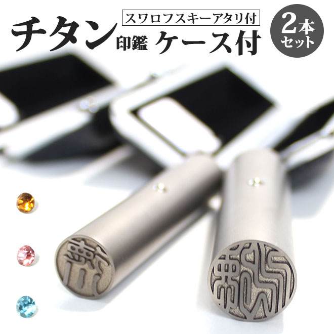 【10%OFFクーポン配布中】 印鑑 はんこ チタン ブラスト チタン印鑑 ステンレス球 or スワロ付 2本セット ブラックもみ革印鑑ケース付 アタリ付き 実印 銀行印 認印 個人印鑑 仕事 就職祝い ギフト 印鑑セット 女性 男性 かわいい 送料無料