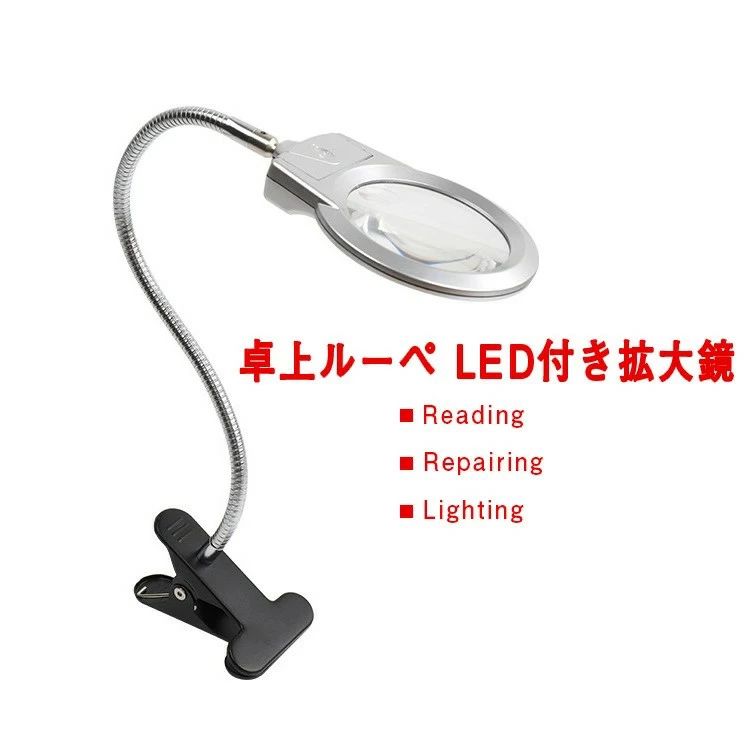 ハンドメイド 読書 プラモデル 模型 ネイル 手芸 プレゼントに最適 レンズ径9cm 卓上 クリップ LEDライト付 6倍 4倍 虫眼鏡 眼鏡