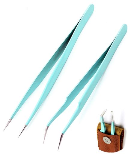 ピンセット 精密 ステンレス キャップ付き 精密ピンセット DIY ハンドメイド制作 つまみ細工 つけまつ毛 プラモデル ネイル 電子工作などにも使用可能 (シアン 2個セット) 送料無料