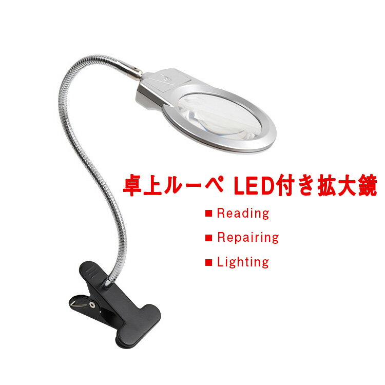 送料無料 卓上ルーペ LED付き ランプ内蔵 拡大鏡 虫眼鏡 クリップタイプ 蛇腹アーム ルーペ スタンド 拡大鏡 デスクルーペ 老眼鏡 虫眼鏡 4倍 6倍 LEDライト付 クリップ 卓上 レンズ径9cm プレゼントに最適 手芸 ネイル 模型 プラモデル 読書 ハンドメイド