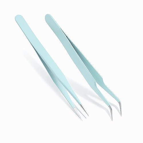 【送料無料】LIANHATA ピンセット 2個セット 精密 ステンレス キャップ付き 精密ピンセット DIY ハンドメイド制作 つまみ細工 つけまつ毛 プラモデル ネイル 電子工作などにも使用可能 (シアン)