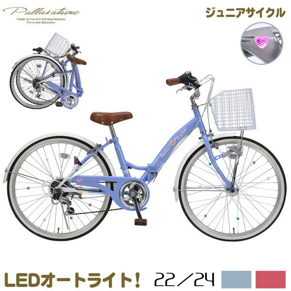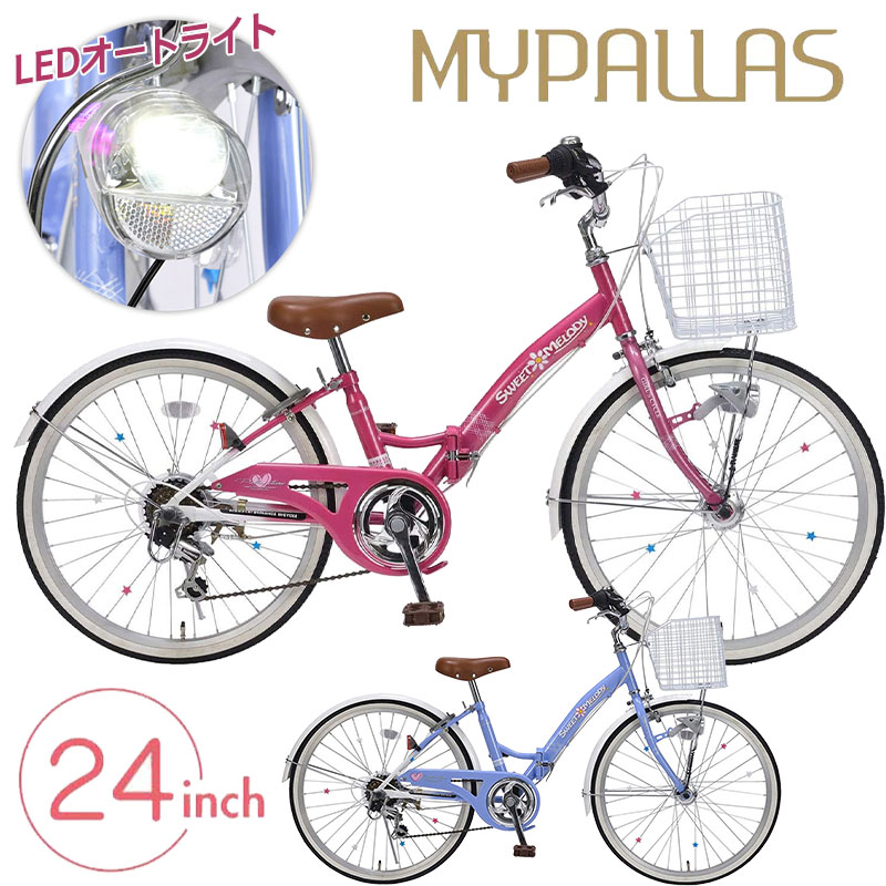 マイパラス 子供用自転車 24インチ 【本州のみ送料無料※】 ラベンダーブルー/ローズピンク キッズバイク 女の子 女子[M-804F]【※沖縄・離島配送不可】【代引き不可】シマノ製6段変速ギア LEDオートライト搭載 折りたたみ かわいい