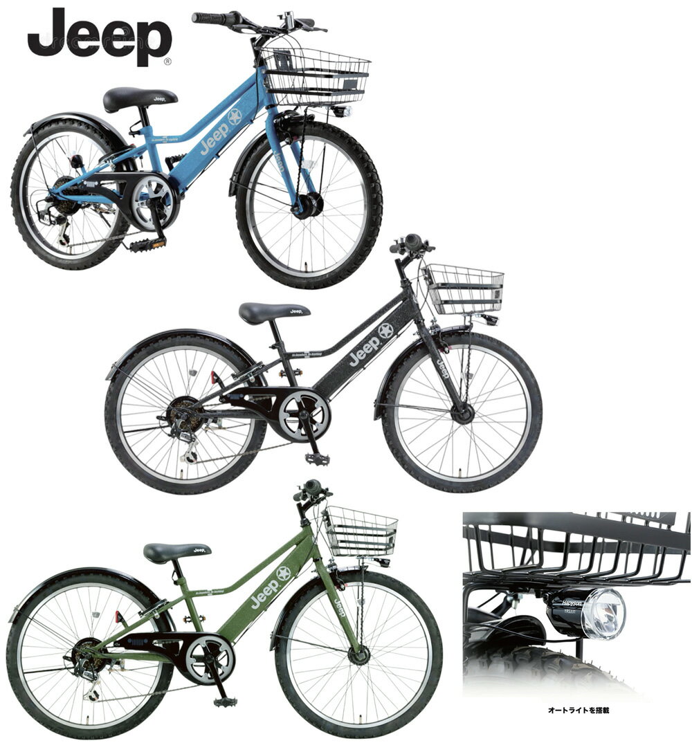 JEEP ジープ CTB お何処の子20インチ子供用自転車 シマノ製6段変速ギア22インチキッズサイクル 24インチ自転車暗くなると自動で点灯オートライト搭載キッズバイク ブルー サンドベージュ オリーブグリーンライト&前かご&泥除け&リング錠標準装備
