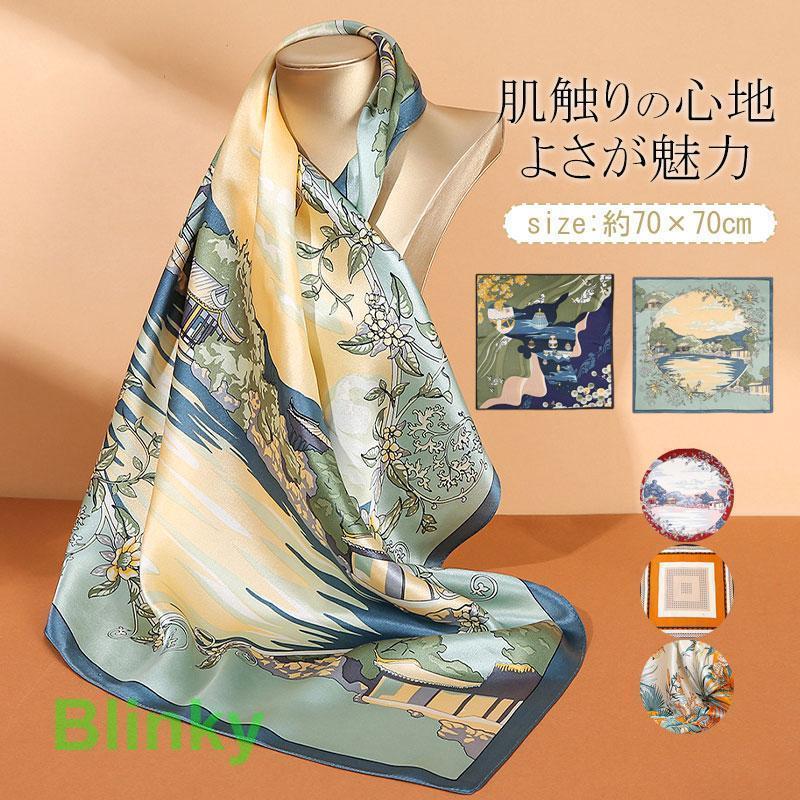 スカーフ レディース フラワー バンダナ カバン巻き 巻き物 正方形 プリント シルク調 多機能 かわいい アクセサリー 贈り物 春夏秋 きれいめ おしゃれ