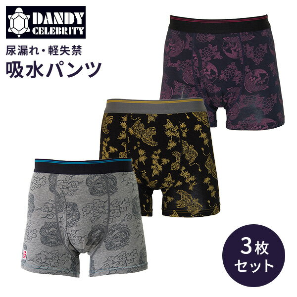尿漏れ 軽失禁 吸水パンツ スマートボクサーパンツ 和柄プリント 3枚組 (M/L/LL/3L) SPMMOK-136GA グレー/ブラック/ネイビー 失禁パンツ メンズ 紳士 男性用 尿モレ 尿もれ プチ漏れ 失禁対策 快適 下着 肌着 おしゃれ 辻一 【送料無料】