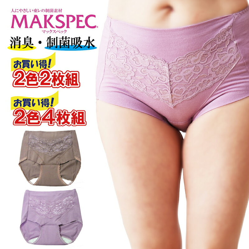 【2色2枚組・4枚組】 レディース 安心ショーツ M〜LL 失禁ショーツ 尿漏れパンツ 大きいサイズ 東レMAKSPEC 制菌・抗菌防臭 吸水3層構造 11.8cc パープル/ブラウン