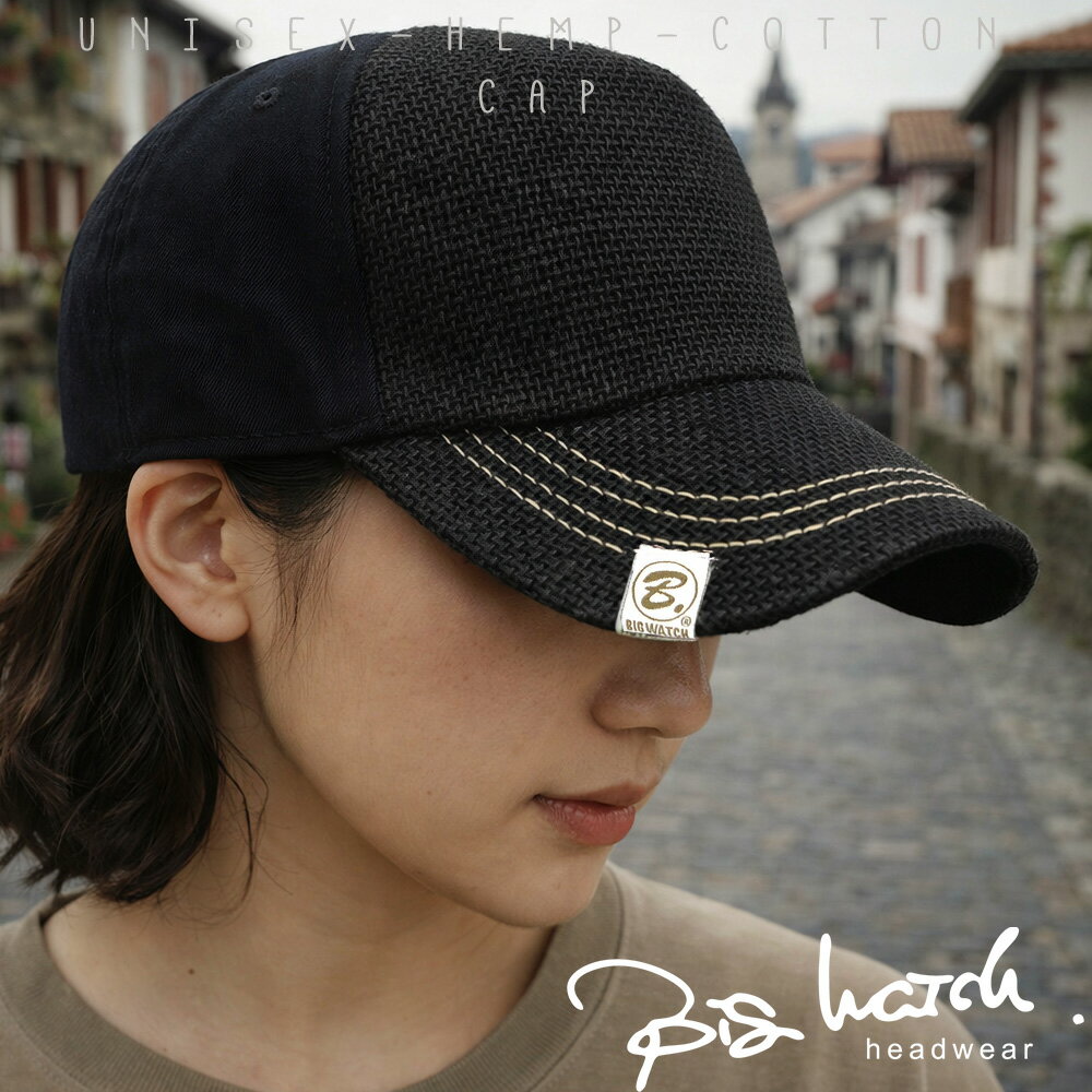 男女兼用サイズ キャップ 無地 ヘンプ コットン キャップ ビッグワッチ BIGWATCH正規品 オールブラック 黒 WCPMCT-01 春 夏 秋