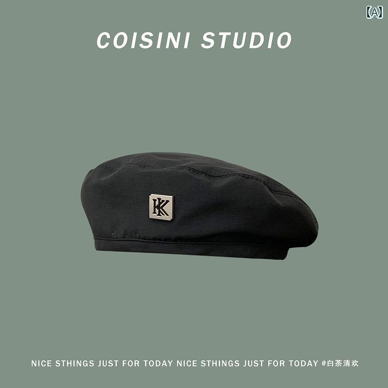 ベレー帽 フェミニン シンプル 文字 Kロゴ 黒 レディース 夏 薄手 通気性 英国 レトロ ファッション ソリッドカラー 画家の帽子