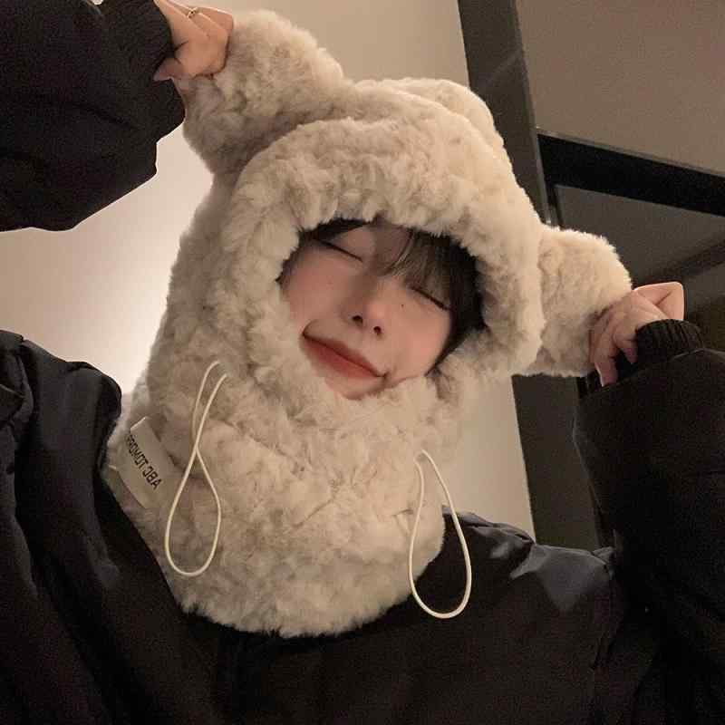 耳当て帽子 レディース 秋冬 かわいい小熊モチーフ 厚手ふわふわ スカーフ マスク セット 保暖 防寒 バイク 自転車 通勤