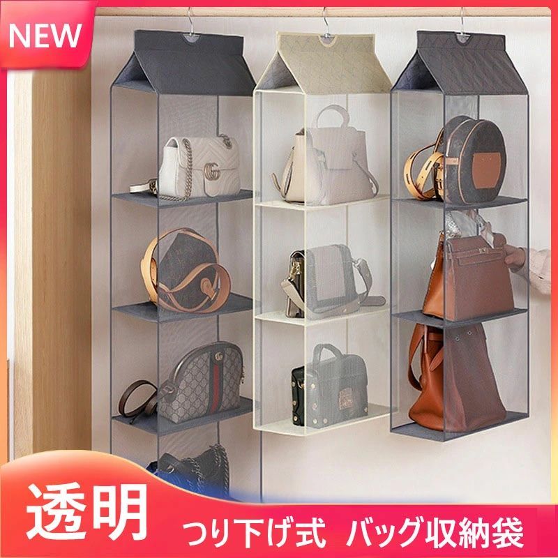 バッグ収納ホルダー 二/三/四格 中身可視 ギフト お中元 ハンガー 壁掛け/整理整頓/立体/防塵/型崩れ防止/お片付け プレゼント フック付き 4格バッグ収納 父の日 吊り下げ式 母の日 カバン収納 ラック クローゼット