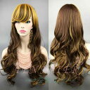 女性用 かつら フェナー ファッション ロング カーリーヘア 高温 イエロー ミックス ブラウンと アメリカ ヘア レディース デイリー コス フルウィッグ