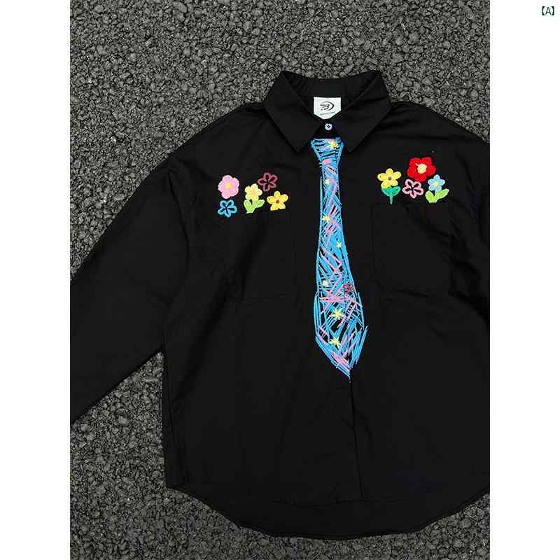 メンズ ファッション コーデ クレヨン グラフィティ タイ シャツ メンズ 春夏 スモールノー ヒット フローラル 刺繍 長袖 カップル ジャケット