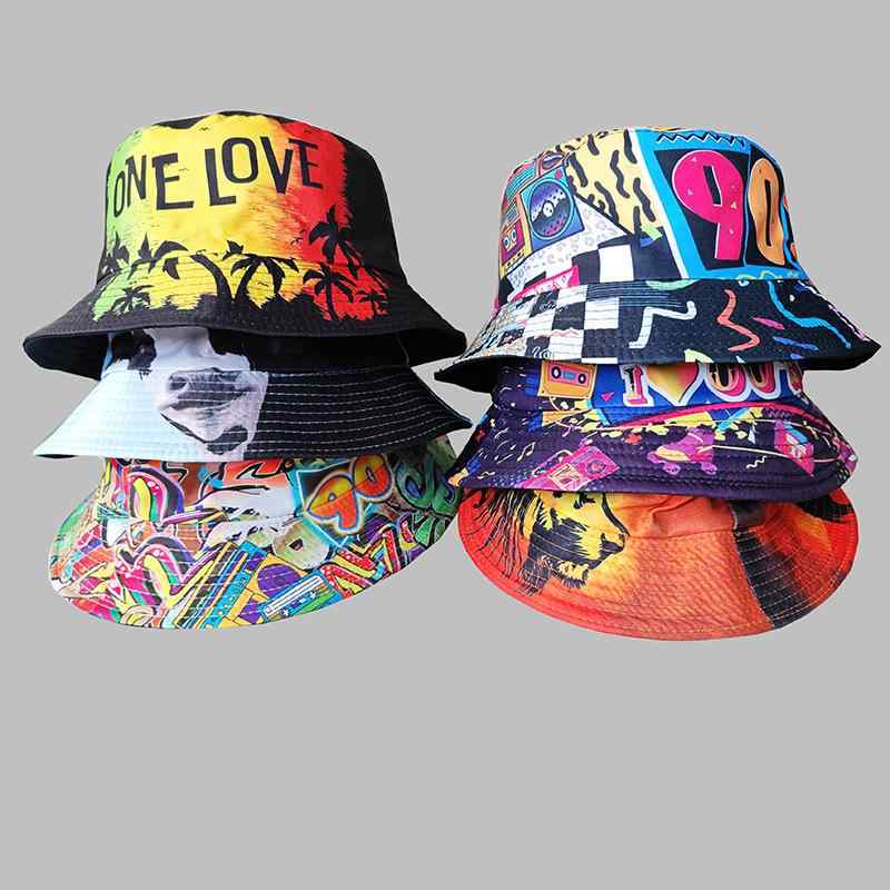 バケットハット 男女兼用 ユニセックス リバーシブル つば広 UVカット 日よけ 綿 コットン グラフィティ プリント ヒップホップ レトロ ストリート カジュアル アウトドア 普段使い