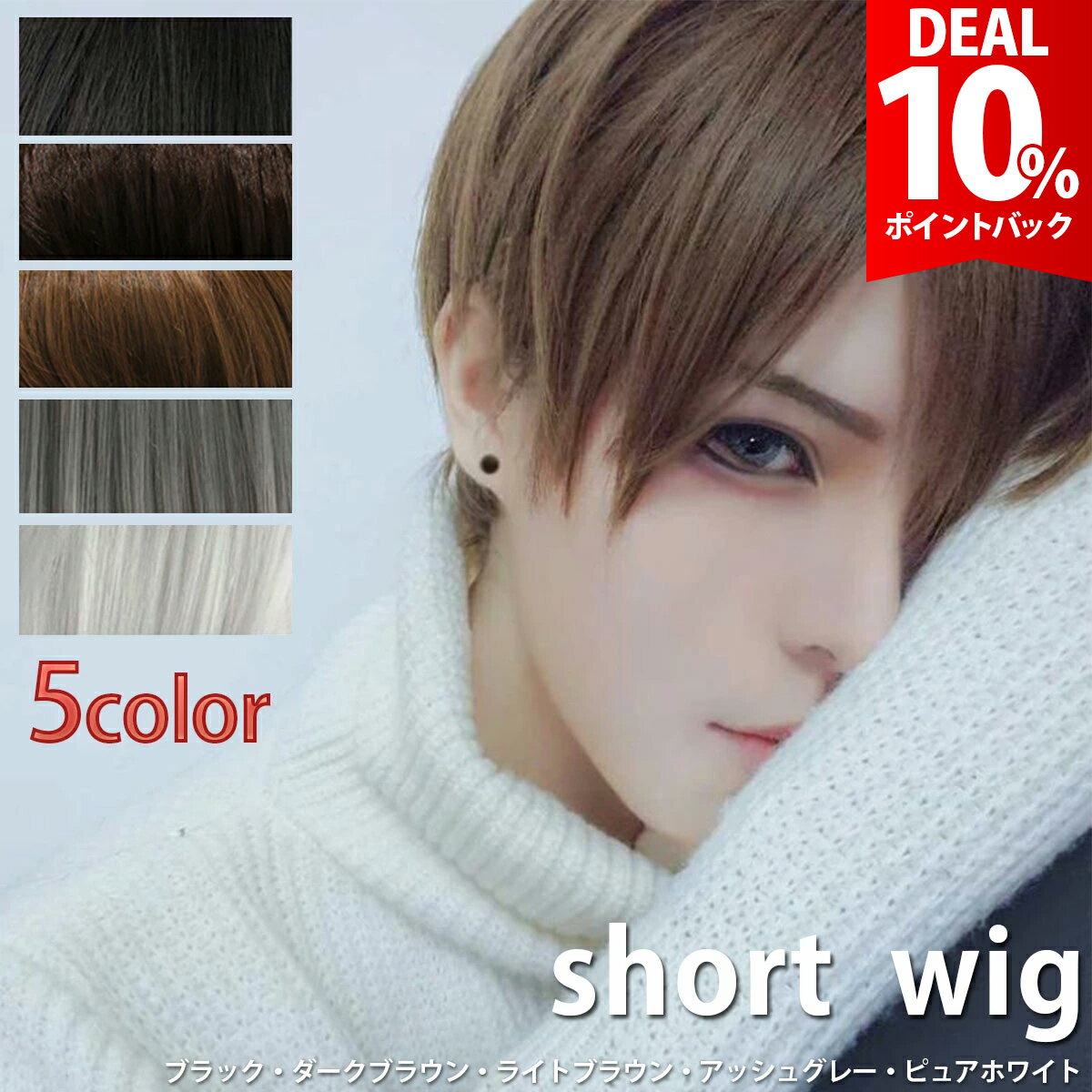 【DEAL★10%ポイントバック】【楽天1位★獲得】ウィッグ 男性 男装 コスプレ かつら メンズ ショート 自然 リアル カツラ フルウィッグ ミディショート レディース 鬘 黒 茶 ブラック ブラウン アッシュグレー ホワイト ウィッグネット付き【全国送料無料】