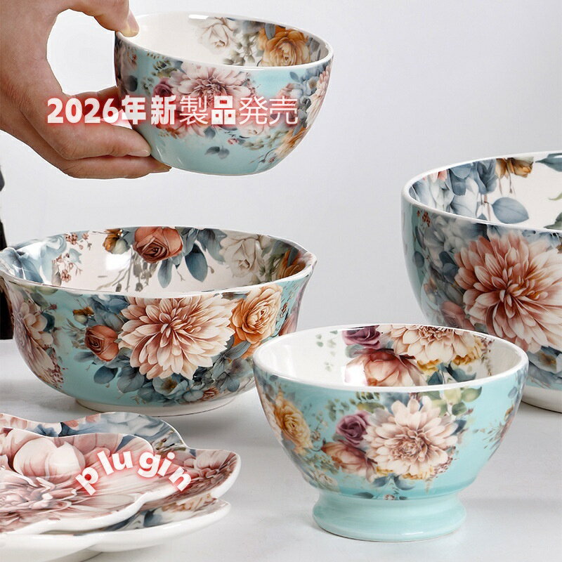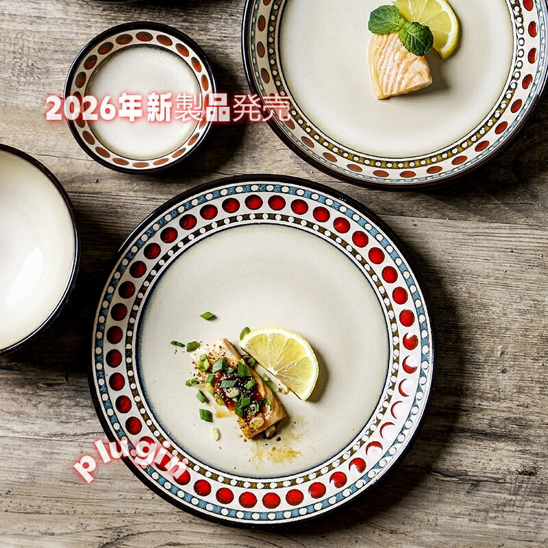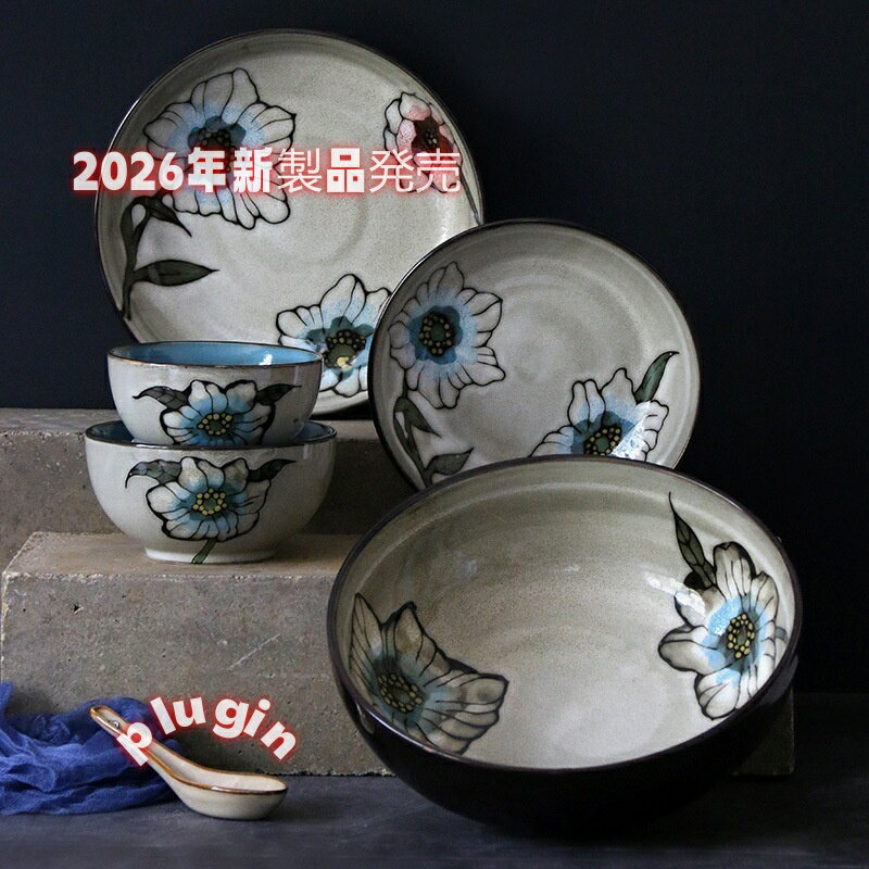 【送料無料】【ポイント5倍】日本のレトロ 陶器 食器セット ディナープレート 深皿 スープボウル ご飯茶碗 スプーン付き ホーム おしゃれ クリエイティブ ギフト