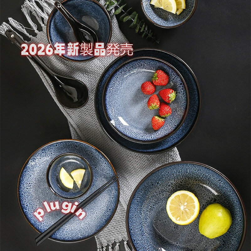 【送料無料】【ポイント5倍】窯変 ブルー クリエイティブ 陶器プレート セット フラットプレート サラダボウル 深皿 スープボウル フルーツボウル ホーム おしゃれ ギフト