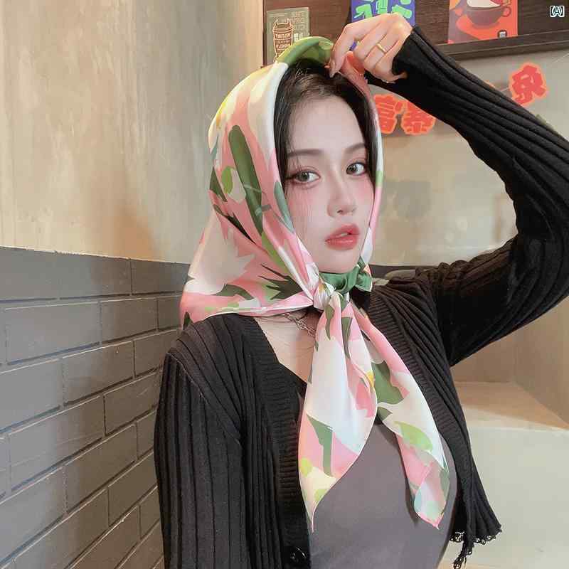 レディース ファッション 小物 スカーフ 柄 かわいい Y2K 平成 ワンポイント 島 フレンチ レトロ グリーン ヘア バンド スカーフ 髪 結ぶ ハイエンド スクエア チューブ トップ ベルト 装飾的 薄手