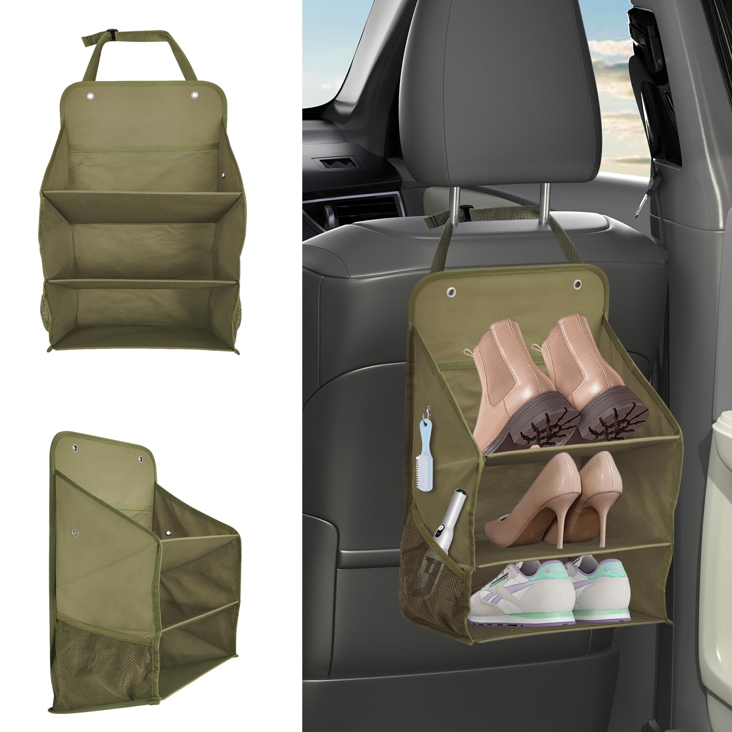 【車内必須】 下駄箱、傘入れ、ラックなどで利用可能 。 車用マルチシューズラック 傘入れは土禁車にフィットするように特別に設計されており、車内のスペースを有効に活用できます。 傘差し部には水抜き穴もあり、清潔に車用収納ラックを保てます。ウェットスポンジまたはウェットタオルで簡単にきれいにする。 ヘッドレストに取り付けるだけなので、大型車から小型車まで幅広い車種に対応。工具は一切必要なし! 取付時間は僅か10 秒間!ベルトをヘッドレストに通し、マジックテープをシートバックに貼り付けて装着済み! ハーネスの長さはバックルで調節可能。 コンパクトながら、5 つのコンパートメントと4つも収納ポケットを装備!!靴や傘、小物などを整理して収納するために使用する。 スマホや赤ちゃん用品などの収納に便利なサイドメッシュバッグ。マグカップなどを整理できるフロントトップポケット。 上部のリングは掃除用ブラシなどを掛けるフックとして使用可能。 多車種対応、ヘッドレストに取り付けるだけですので大型車種〜小型車種まで対応。サイズFサイズについての説明厚み0.3* 横幅48.5*縦 78cm素材ポリエステル色グレー傘ホルダー 車用収納ボックスラック靴入れ 小物収納グッズ 車用マルチシューズラック カーシューズラック 車用マルチシューズラック 傘立て 下駄箱 折りたたみ式 5段 車用収納ボックス ハイエースやNV350など 多車種対応 梅雨対策 車中泊【車内必須】 下駄箱、傘入れ、ラックなどで利用可能 。 車用マルチシューズラック 傘入れは土禁車にフィットするように特別に設計されており、車内のスペースを有効に活用できます。 傘差し部には水抜き穴もあり、清潔に車用収納ラックを保てます。ウェットスポンジまたはウェットタオルで簡単にきれいにする。 ヘッドレストに取り付けるだけなので、大型車から小型車まで幅広い車種に対応。工具は一切必要なし! 取付時間は僅か10 秒間!ベルトをヘッドレストに通し、マジックテープをシートバックに貼り付けて装着済み! ハーネスの長さはバックルで調節可能。 コンパクトながら、5 つのコンパートメントと4つも収納ポケットを装備!!靴や傘、小物などを整理して収納するために使用する。 スマホや赤ちゃん用品などの収納に便利なサイドメッシュバッグ。マグカップなどを整理できるフロントトップポケット。 上部のリングは掃除用ブラシなどを掛けるフックとして使用可能。 多車種対応、ヘッドレストに取り付けるだけですので大型車種〜小型車種まで対応。サイズFサイズについての説明厚み0.3* 横幅48.5*縦 78cm素材ポリエステル色グレー 傘ホルダー 車用収納ボックスラック靴入れ 小物収納グッズ 車用マルチシューズラック カーシューズラック 車用マルチシューズラック 傘立て 下駄箱 折りたたみ式 5段 車用収納ボックス ハイエースやNV350など 多車種対応 梅雨対策 車中泊