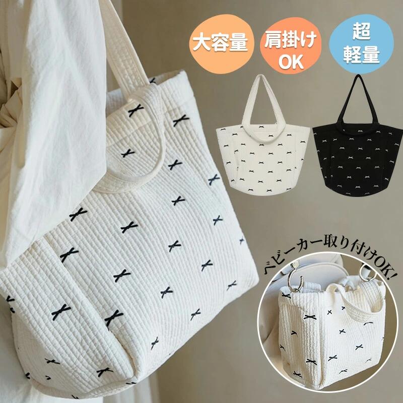 マザーズバッグ キルティング バッグ ショルダー 肩掛け マザーズトート レディース ママ 大容量 シンプル コーディネート 通勤 入院バッグ 韓国 トート かわいい ベビーカーバッグ 可愛い 刺繍 3way 軽量 トートバッグ 260g 出産準備