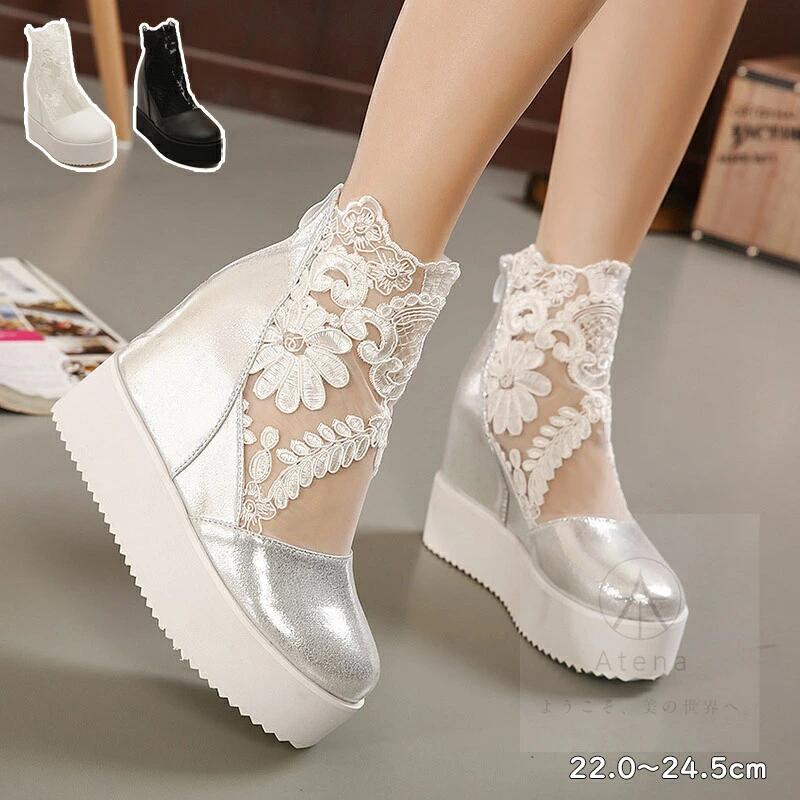 スニーカー インヒールスニーカー 韓国 プラットフォームスニーカー 美脚 厚底 無敵 疲れない ブライダルシューズ レース 厚底スニーカー レディース 結婚式 和装 靴 シューズ 刺繍 インヒール ブーツサンダル シースルー 11cm 11センチ ハイカット 春 夏 通気性 おしゃれ