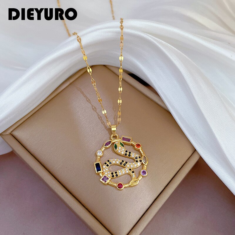 【クーポン利用で3040円】 ペンダント ネックレス スネーク ステンレス チェーン ストーン レース レディース 女性 316L スチール カラフル 蛇 スネイク 新しい ファッション ガール 鎖骨 パーティ ジュエリー ギフト