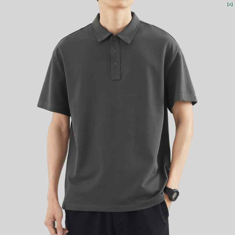 メンズ ファッション コーデ パール コットン ポロシャツ メンズ 春夏 無地 シンプル ヘビー トップス カジュアル 半袖 Tシャツ