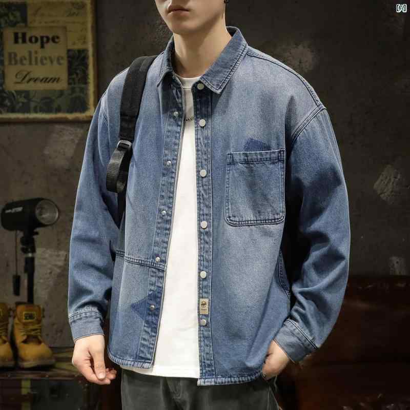 メンズ ファッション コーデ アメリカ ヘビー デニムシャツ メンズ 2025 春秋 インチ 服 ワークウェア ジャケット コート