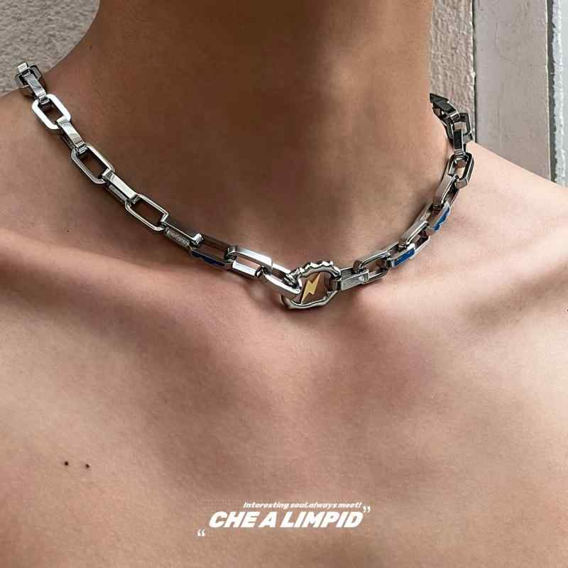 Y2K ファッション 2000代 CHALIMPID ライトニング ヘビーメタル チタン スチール ヒップ ホップ ハイエンド ネックレス